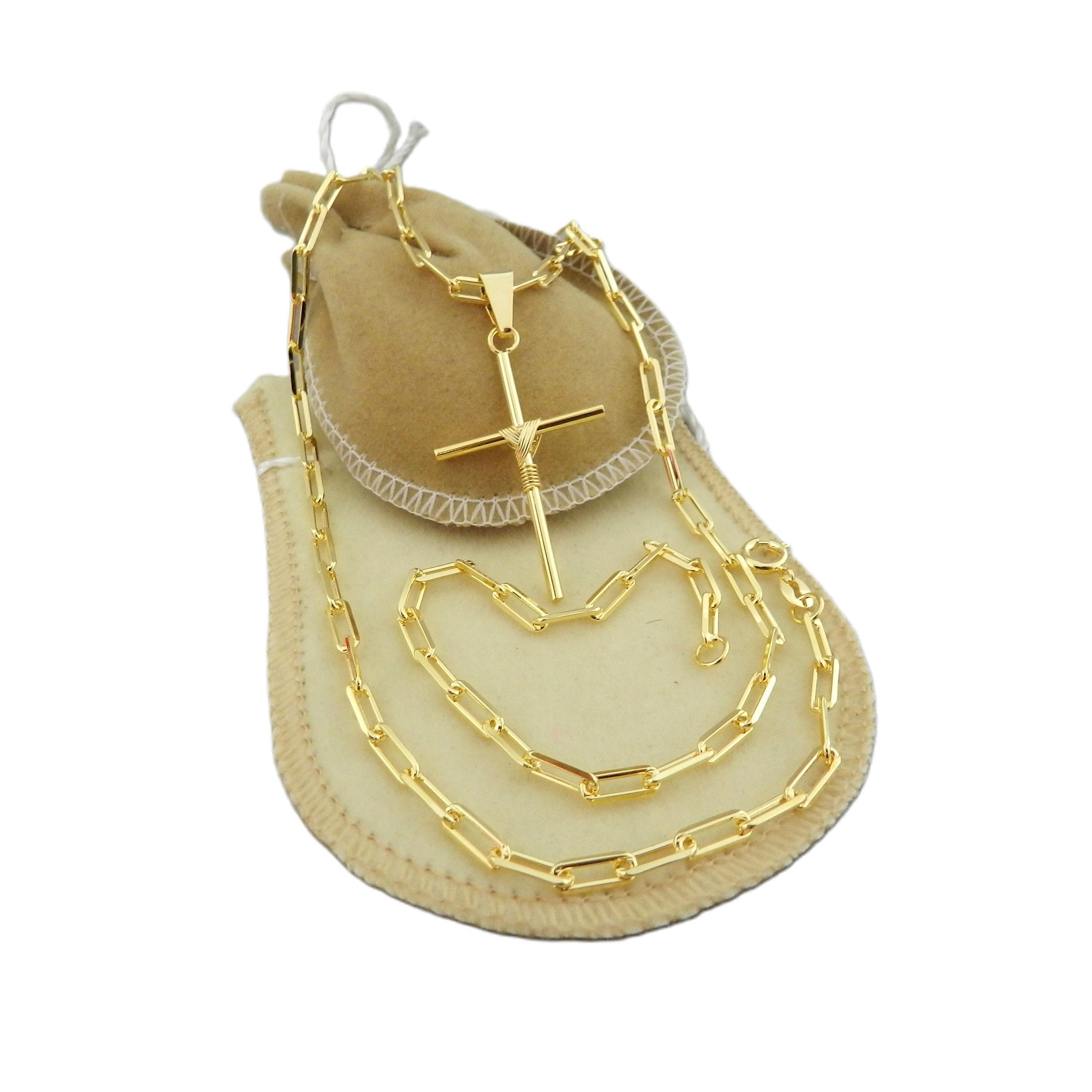 Corrente Masculina 70cm 3mm Cruz 35mm Banhado Ouro 18K CR680C